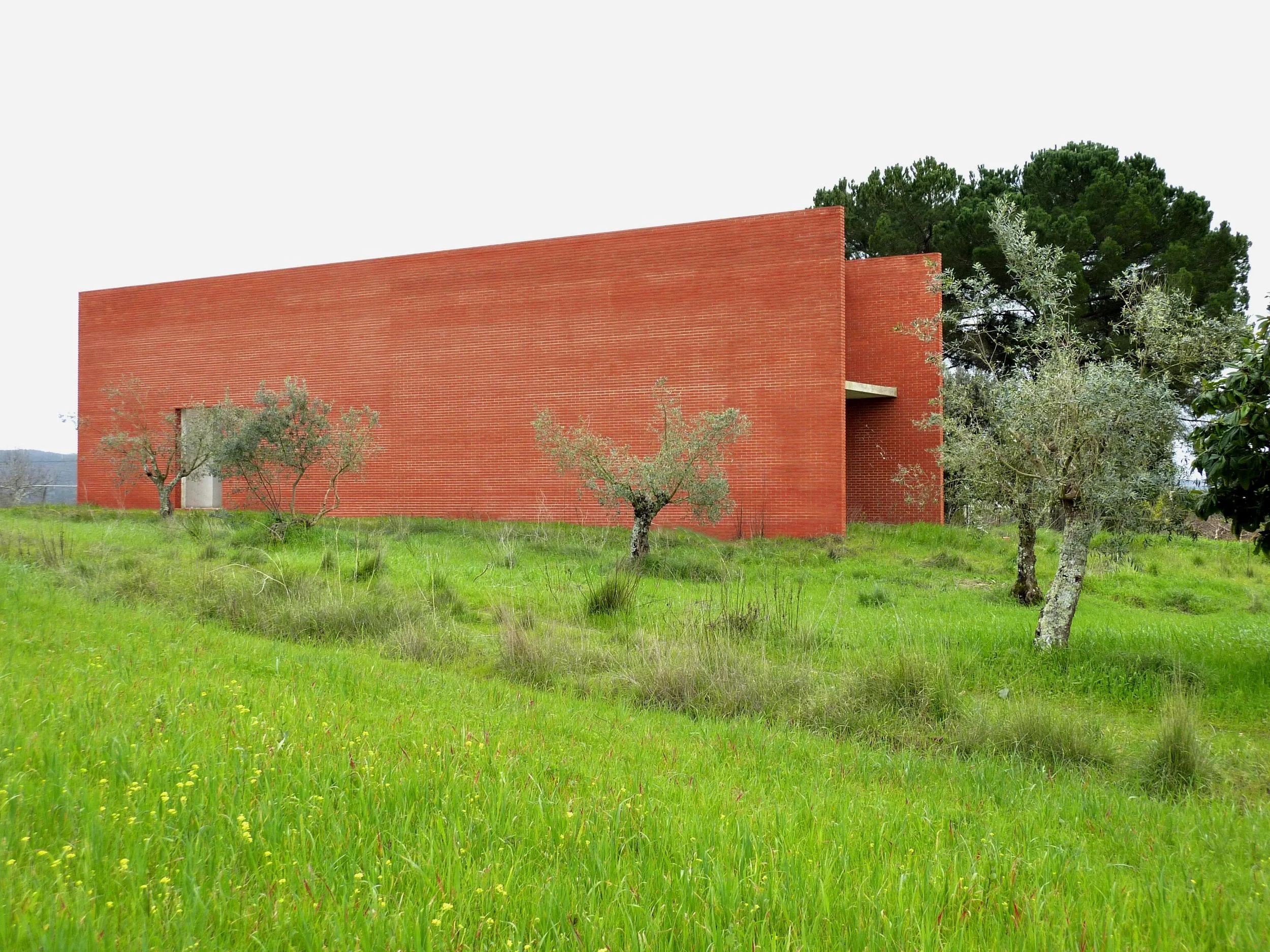 Num mesmo sentido, optou-se pela construção dos muros em tijolo cerâmico vermelho, a matéria recorrente nos telhados que caracterizam as construções circundantes.