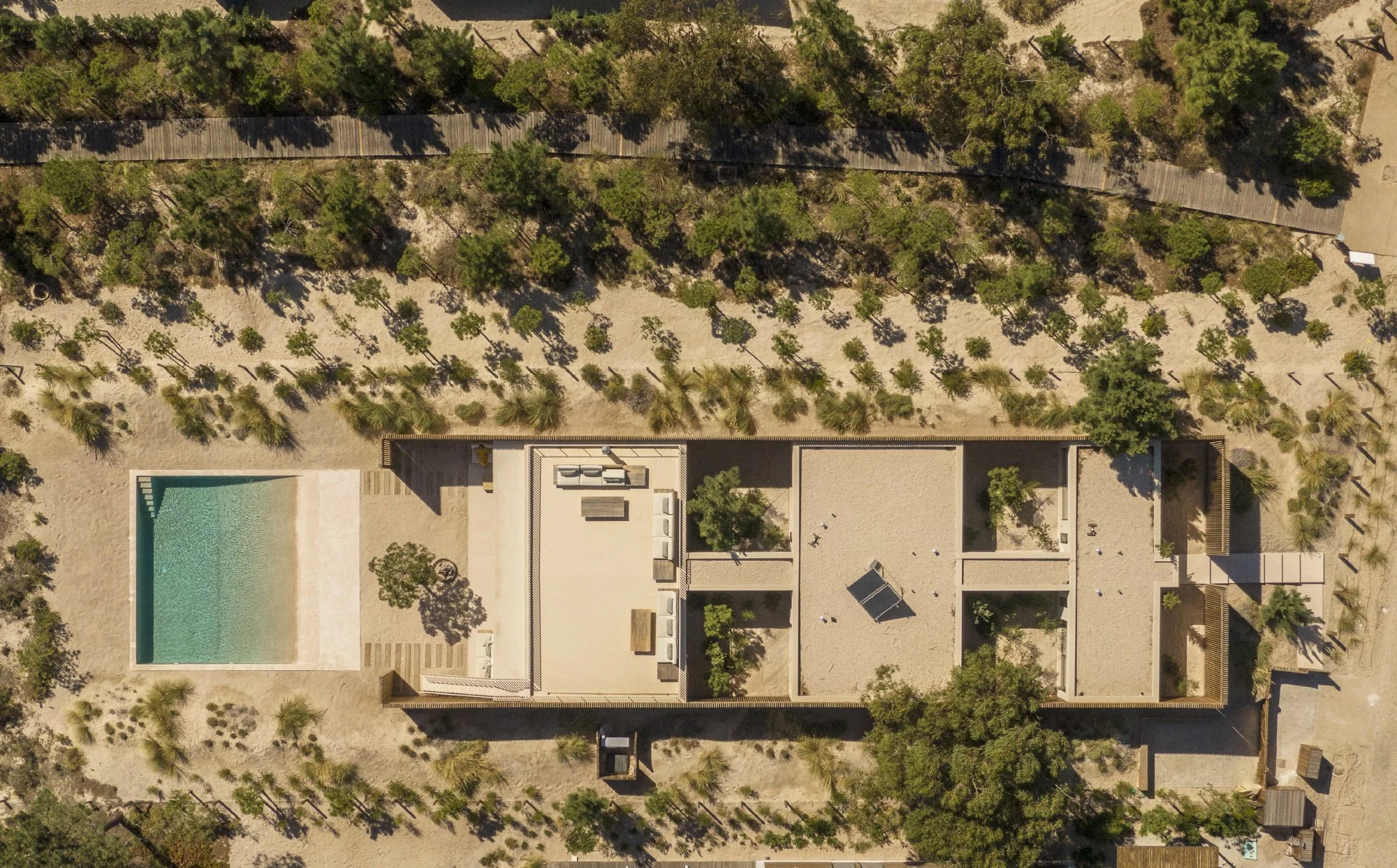 The two fundamental principles that defined the project were the importance of preserving the environment based on ecological support – specifically, protecting the dunes and the local vegetal species – and the need to ensure the inhabitants' privacy.