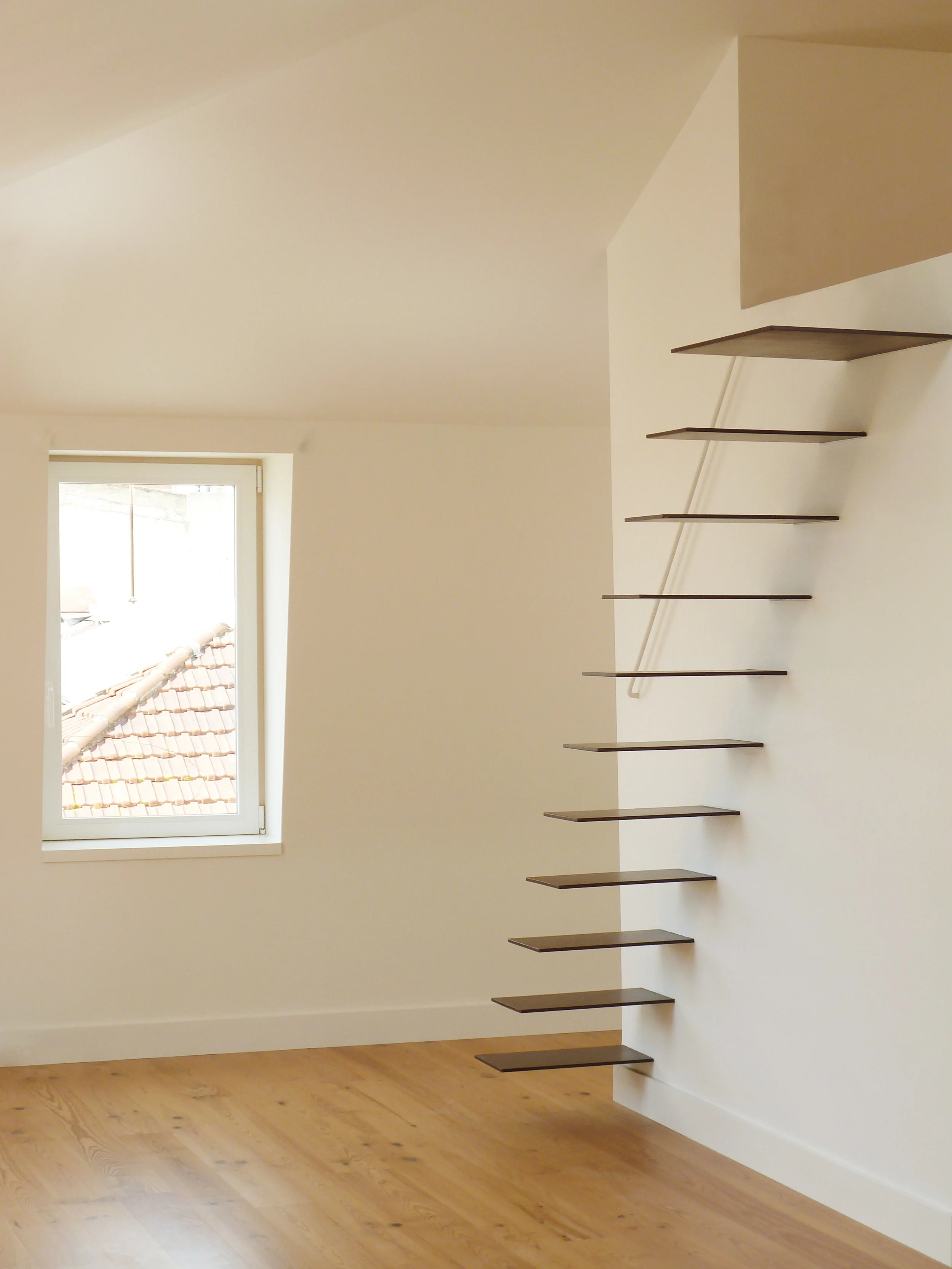Construímos toda a estrutura dos dois novos pisos em aço leve com sistema de painéis cimentícios e demos continuidade à leitura dos rebocos afagados dos pisos inferiores.